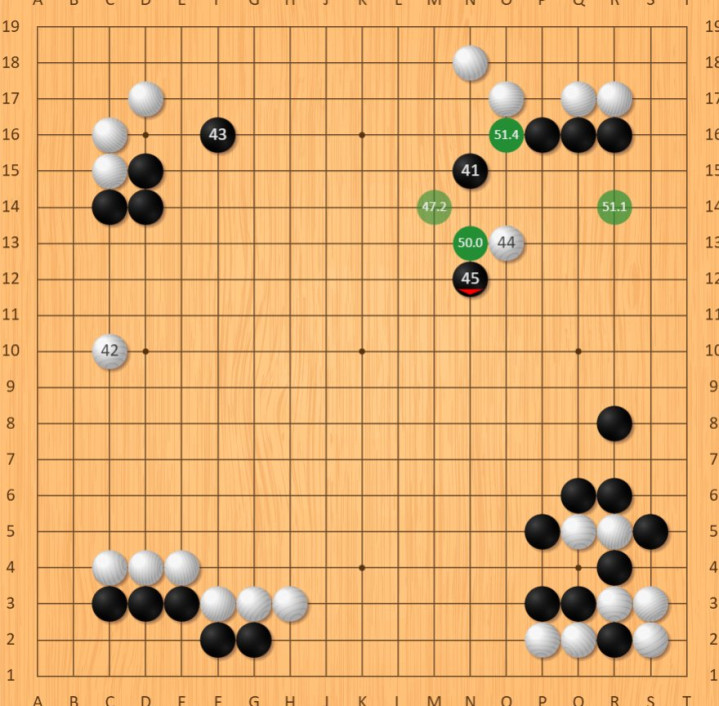 在经历前两盘的快刀斩乱麻之后,本盘两位棋手的节奏终于慢了下来,双方从布局开始便频频长考,丝毫不想让局面走向被动!实战中,李志贤猜中黑棋,檀啸则手握白棋。布局中,双方十分谨慎,黑棋在右下23手的退十分疲软,这让白棋随即吃掉右下角落,局面也逐渐走向了拉锯战!
